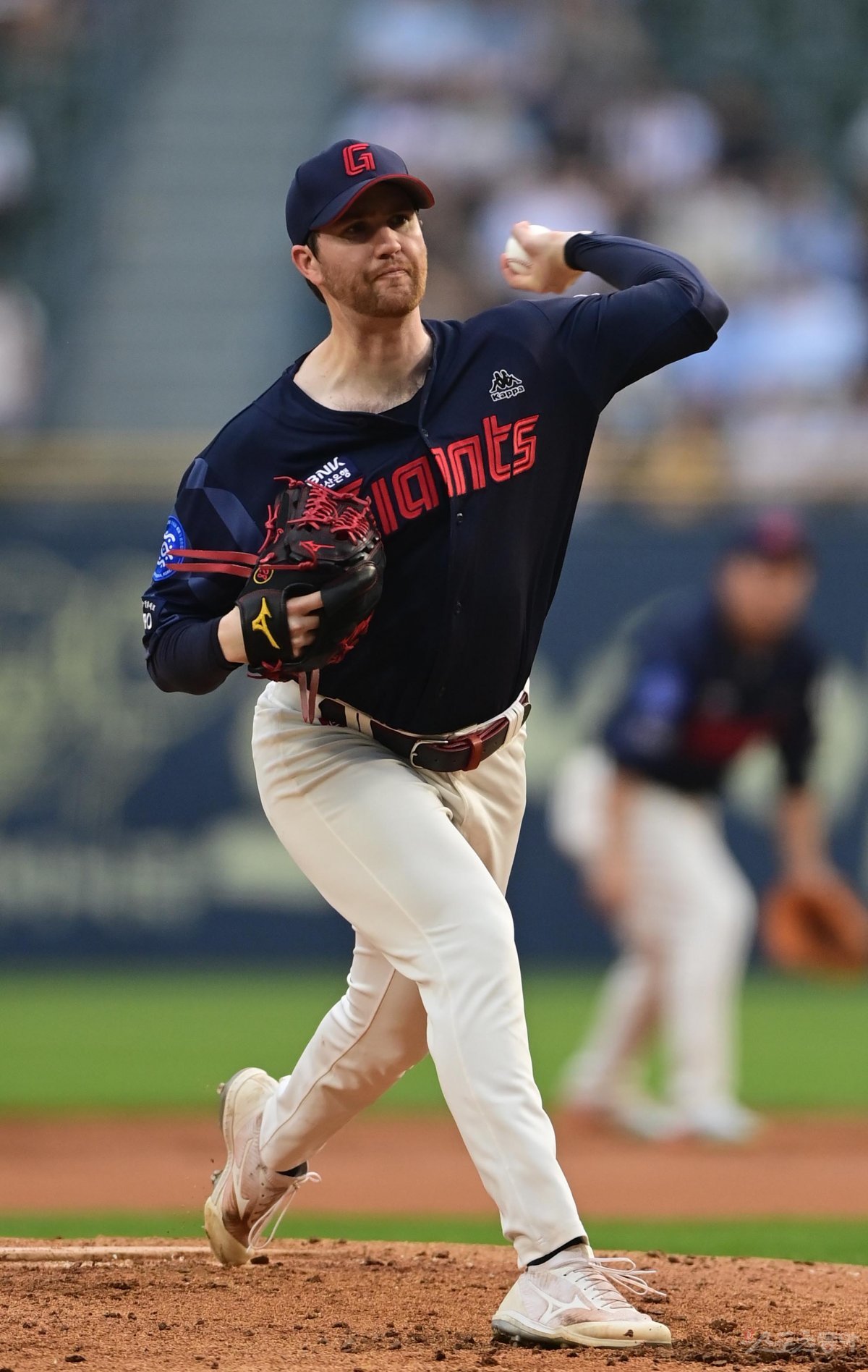 1일 서울 잠실야구장에서 열린 ‘2023 신한은행 SOL KBO리그’ LG 트윈스와 롯데 자이언츠의 경기에서 선발 투수로 마운드에 오른 롯데 반즈가 역투하고 있다.