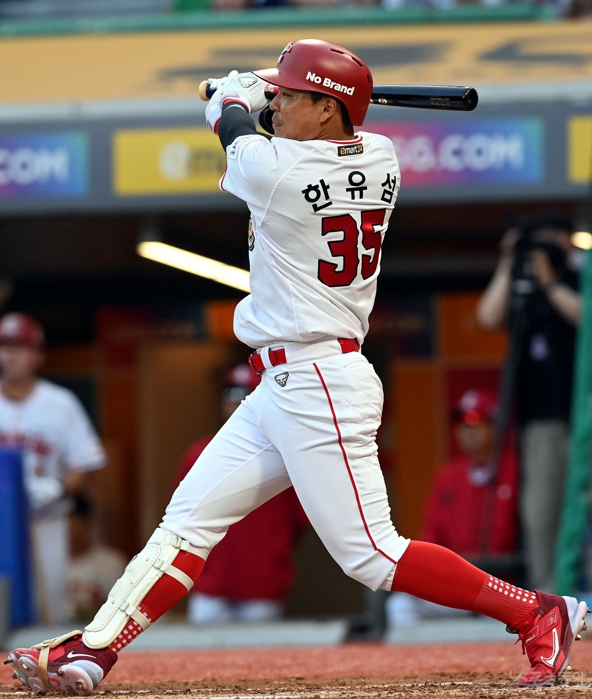 1일 인천 SSG 랜더스필드에서 ‘2023 신한은행 SOL KBO리그’ SSG 랜더스와 삼성 라이온즈의 경기가 열렸다. 3회말 무사 1루에서 SSG 한유섬이 1타점 2루타를 날리고 있다.