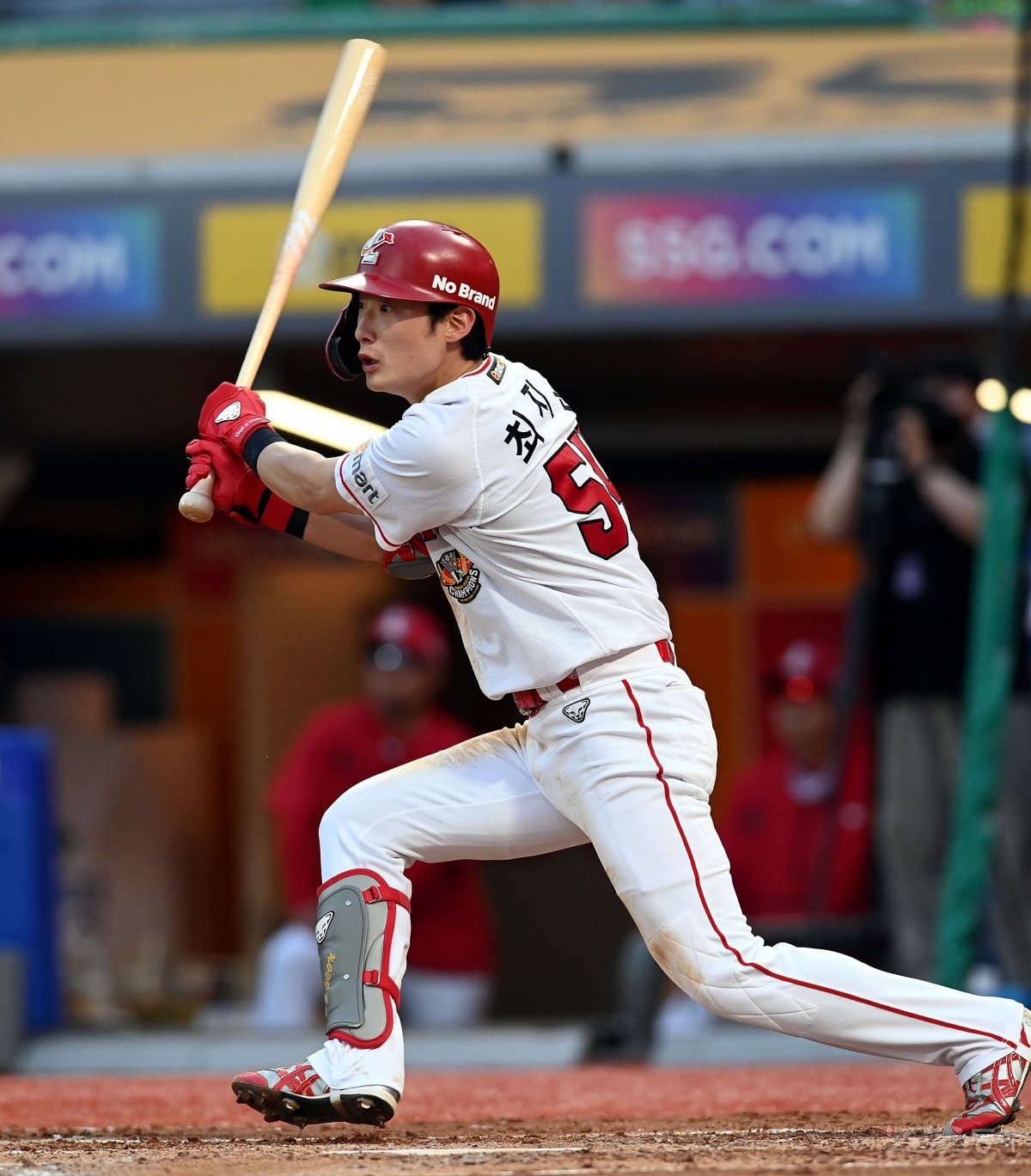 1일 인천 SSG 랜더스필드에서 ‘2023 신한은행 SOL KBO리그’ SSG 랜더스와 삼성 라이온즈의 경기가 열렸다. 3회말 2사 2루에서 SSG 최지훈이 1타점 3루타를 날리고 있다.