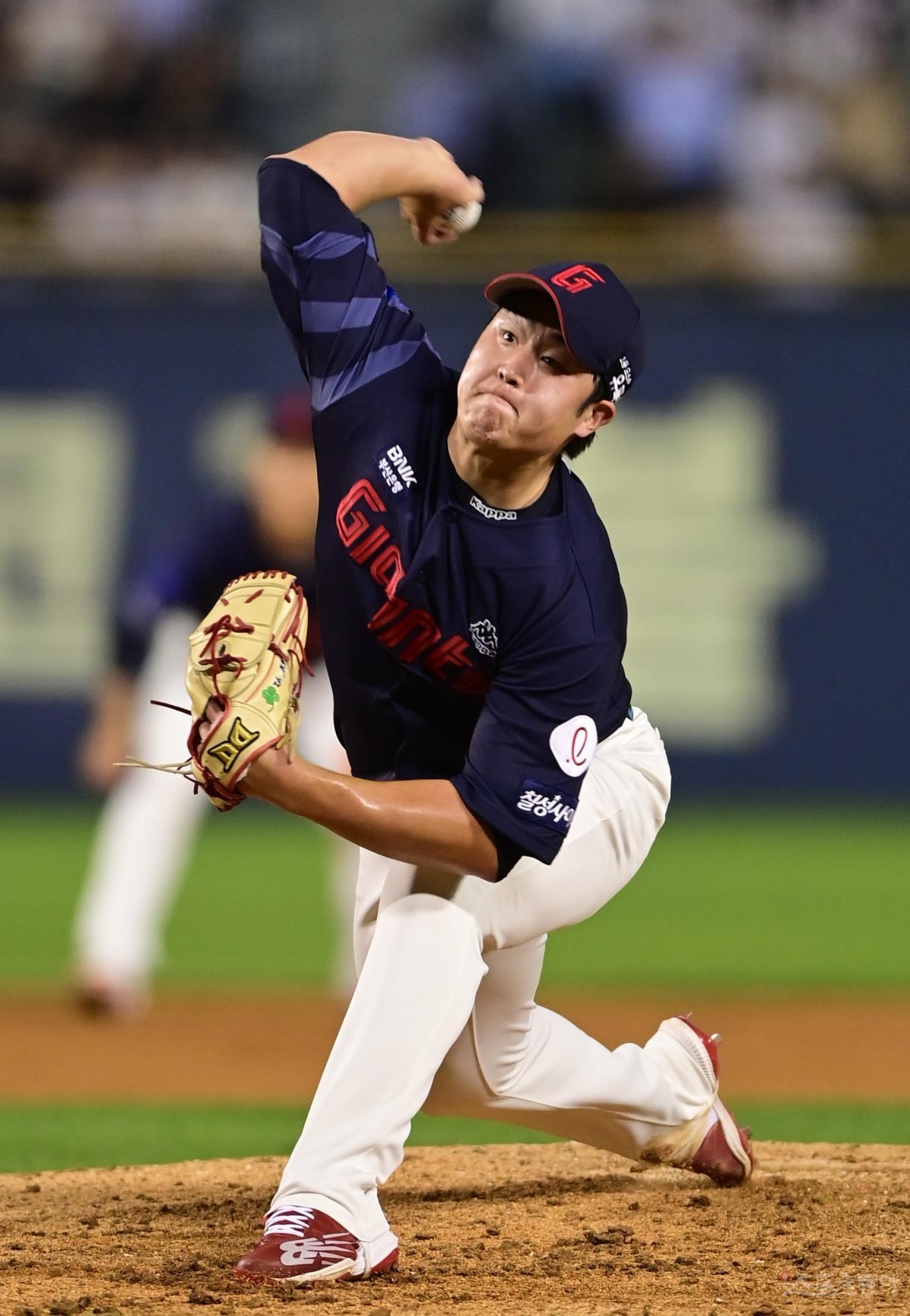 1일 서울 잠실야구장에서 열린 ‘2023 신한은행 SOL KBO리그’ LG 트윈스와 롯데 자이언츠의 경기에서 6회말 롯데 진승현이 교체로 마운드에 올라 역투하고 있다.