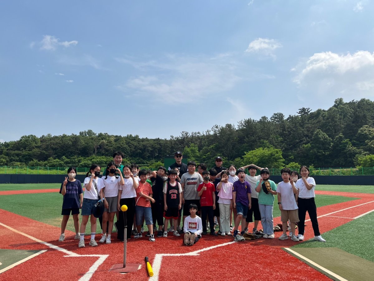 연고지 야구 저변 확대 및 활성화를 위해 마련된 이날 행사에는 익산 신동초등학교 학생 30여명이 참가해 경기 관람 및 야구장 실내 연습장 등 주요 시설을 견학한 후 퓨처스 이성열, 이준수 코치의 지도 아래 티볼 배팅과 캐치볼을 연습하고, 티볼 경기를 체험했다.
