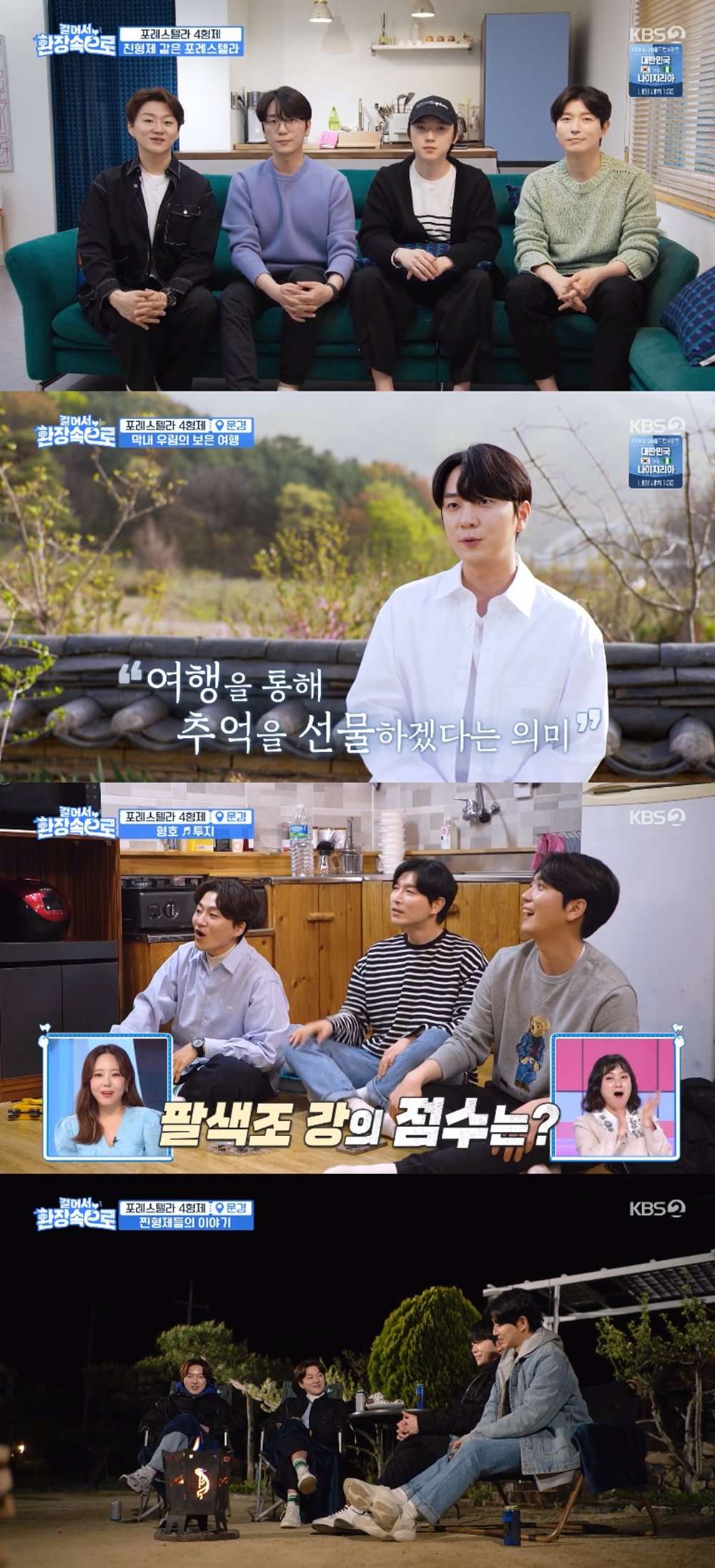 크로스오버 그룹 포레스텔라(Forestella/강형호, 고우림, 배두훈, 조민규)가 지난 4일 KBS2 예능프로그램 \'걸어서 환장 속으로\'에 출연해 경상북도 문경으로 떠난 보은 여행기를 공개했다.
