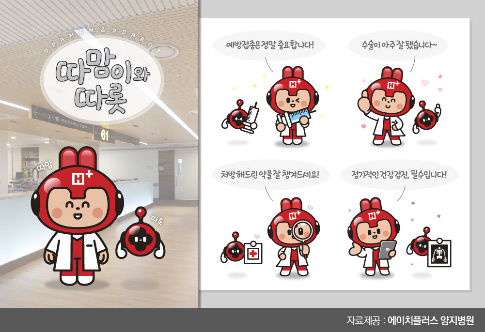 3월 의료법인 서울효천의료재단 설립과 함께 새로운 출발을 선언한 H+양지병원이 병원 미션인 ‘앞선 의학 따뜻한 마음’을 담은 AI캐릭터 ‘따맘이와 따롯’을 7일 발표했다.