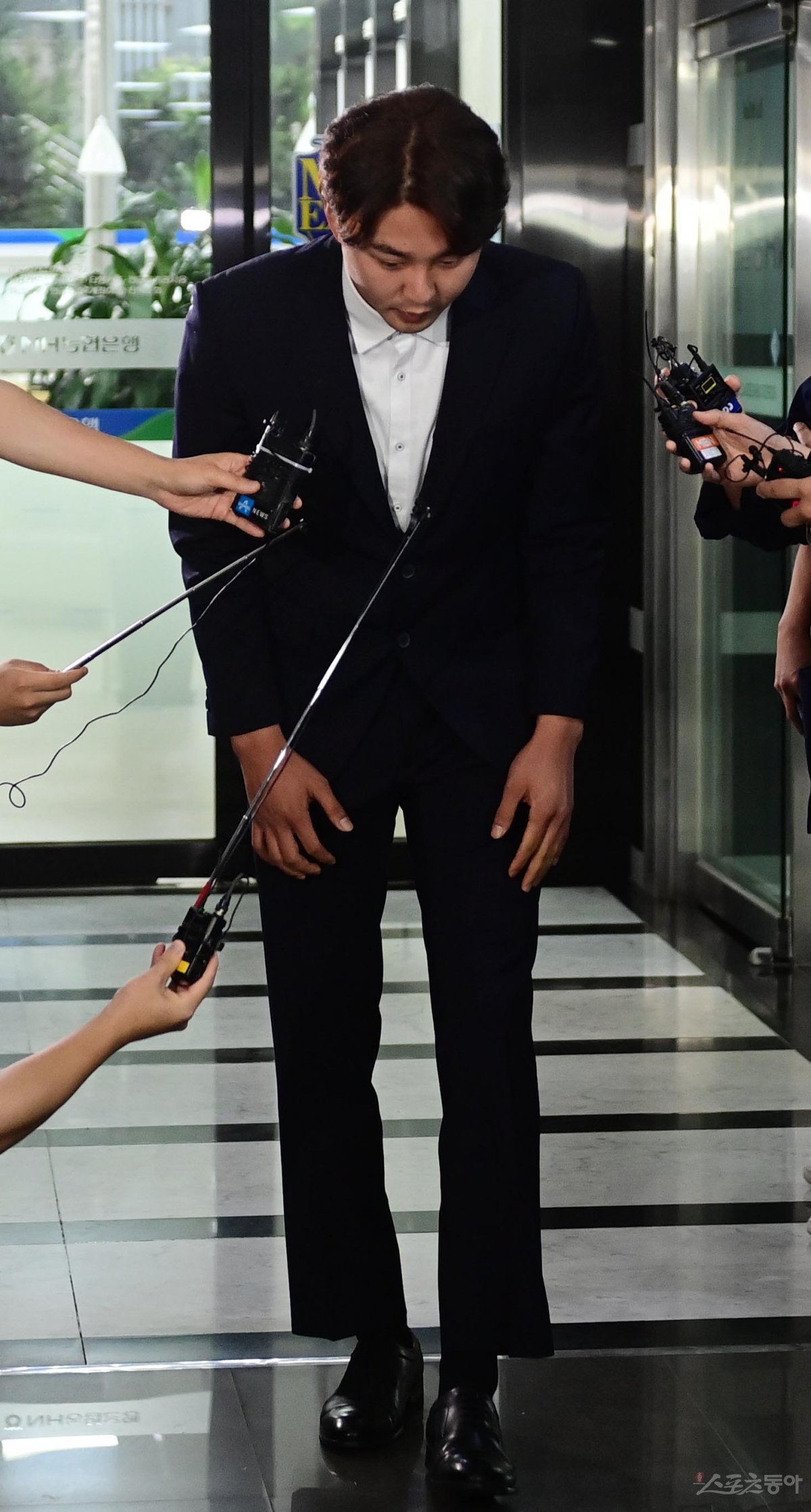 두산 정철원이 7일 서울 강남구 도곡동 야구회관에서 열린 2023 월드베이스볼클래식(WBC) 기간에 음주로 논란으로 열린 상벌위원회에 참석하고 있다.