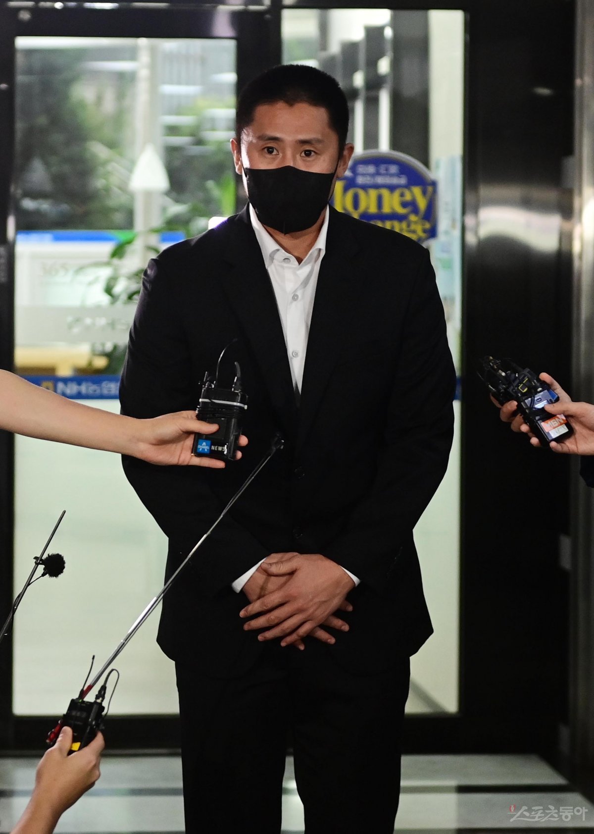 NC 이용찬이 7일 서울 강남구 도곡동 야구회관에서 열린 2023 월드베이스볼클래식(WBC) 기간에 음주로 논란으로 열린 상벌위원회에 참석하고 있다.