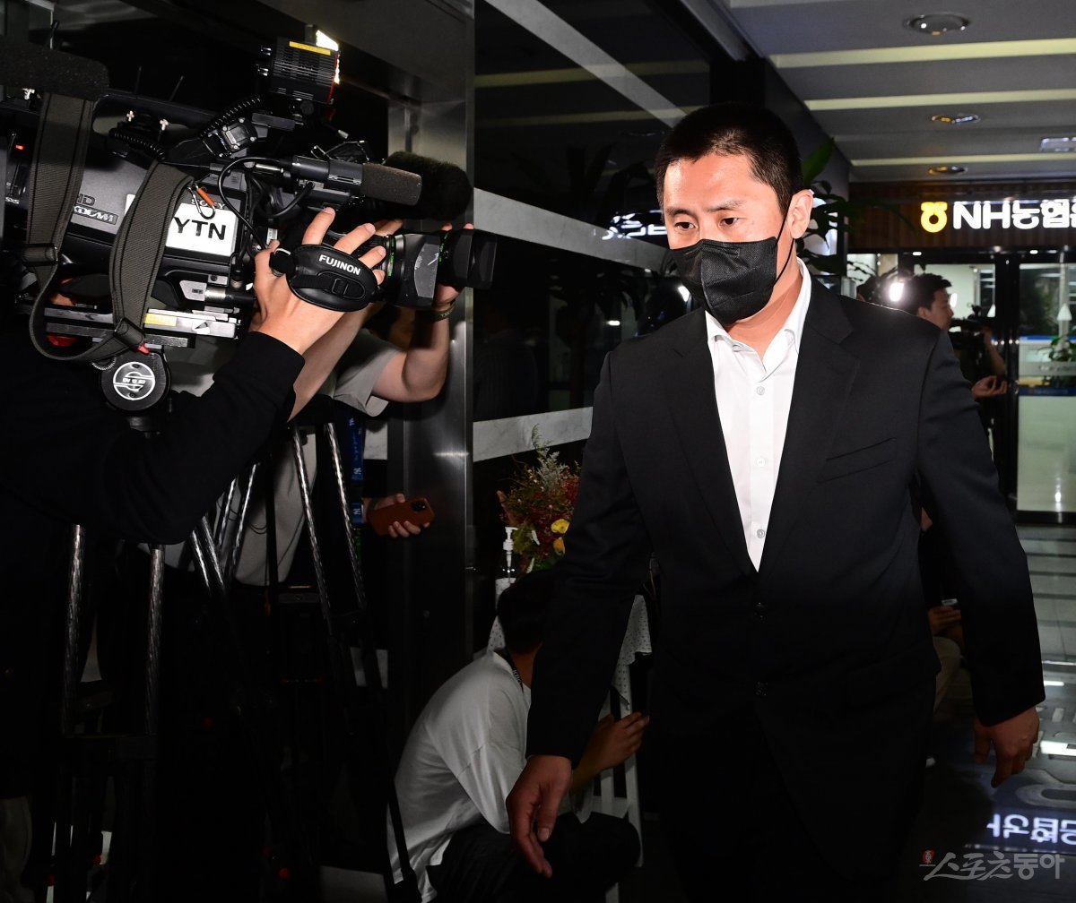NC 이용찬이 7일 서울 강남구 도곡동 야구회관에서 열린 2023 월드베이스볼클래식(WBC) 기간에 음주로 논란으로 열린 상벌위원회에 참석하고 있다.