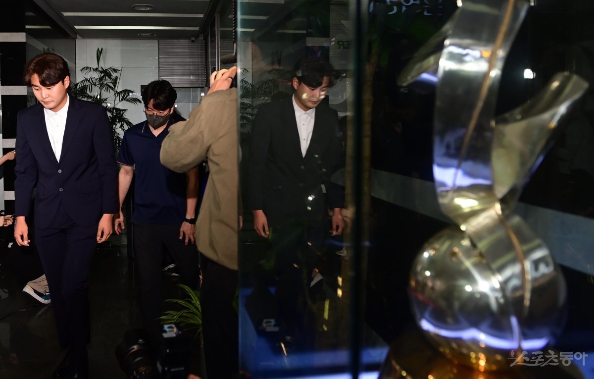 두산 정철원이 7일 서울 강남구 도곡동 야구회관에서 2023 월드베이스볼클래식(WBC) 기간에 음주 논란으로 열린 상벌위원회를 마친 후 나서고 있다.