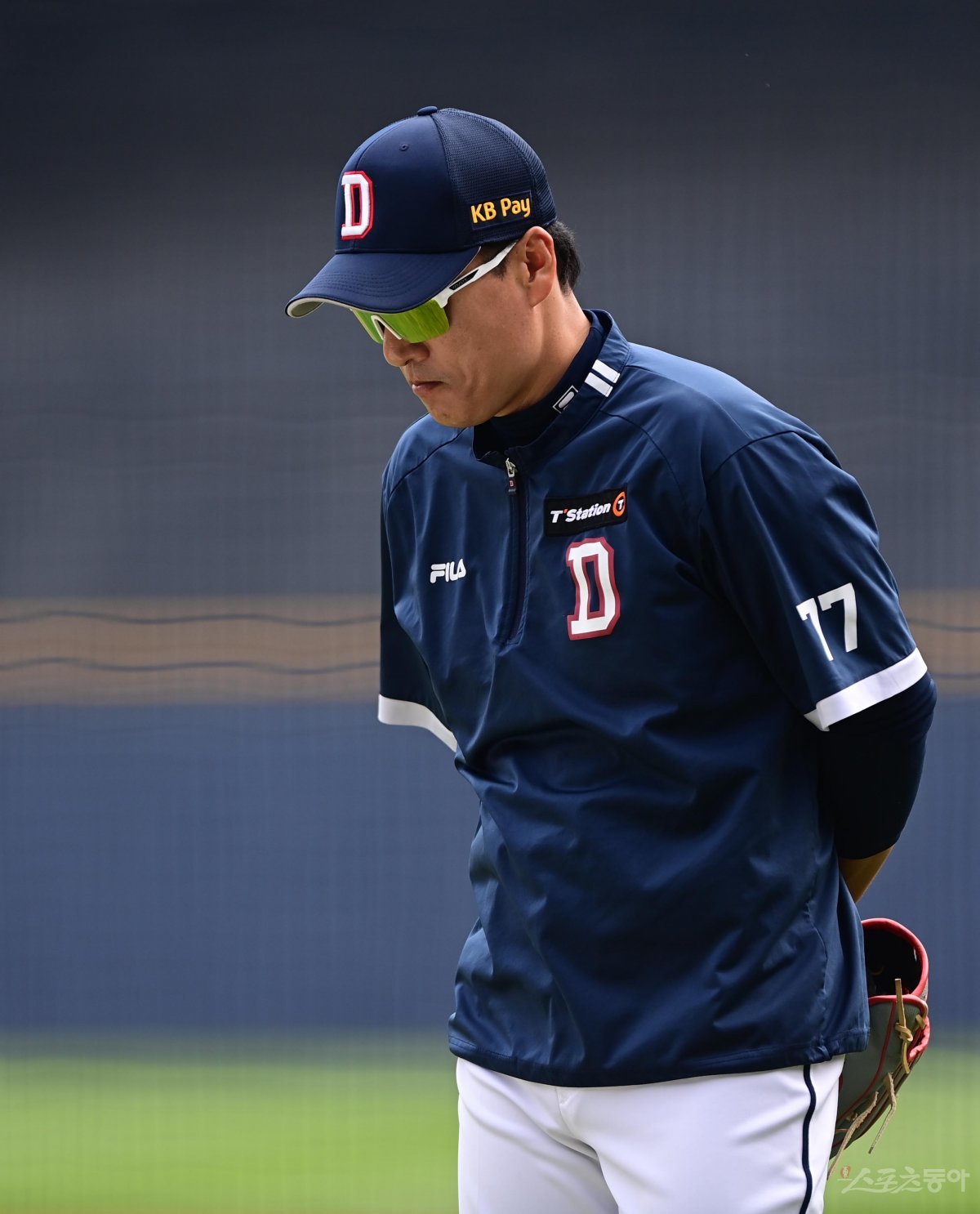 7일 서울 잠실야구장에서 열린 ‘2023 신한은행 SOL KBO리그’ 두산 베어스와 한화 이글스의 경기에 앞서 두산 이승엽 감독이 생각에 잠겨 있다.