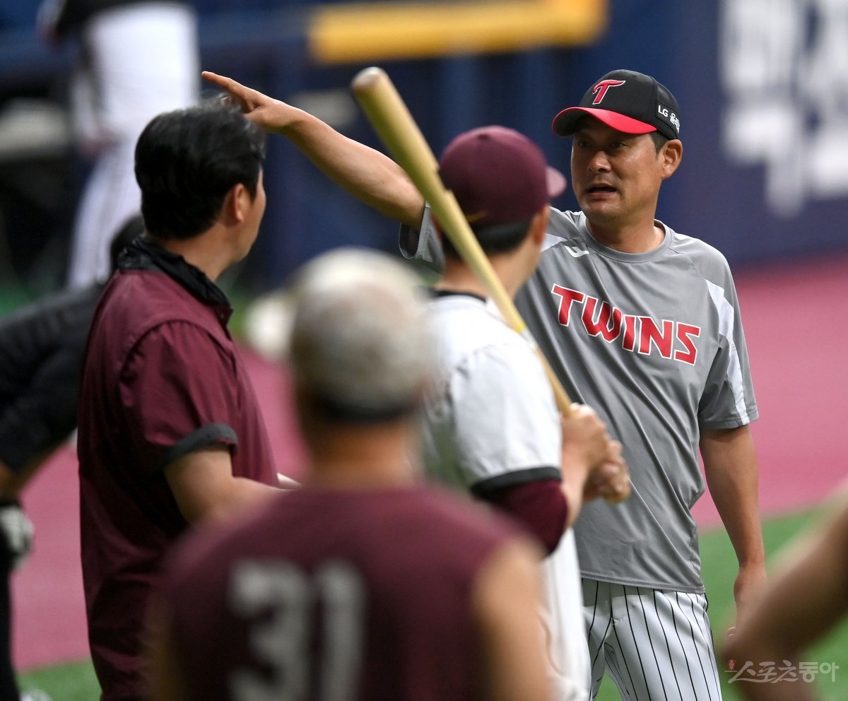 7일 서울 고척스카이돔에서 ‘2023 신한은행 SOL KBO리그’ LG 트윈스와 키움 히어로즈 경기가 열린다. LG 이종범 코치가 이야기를 하고 있다.
