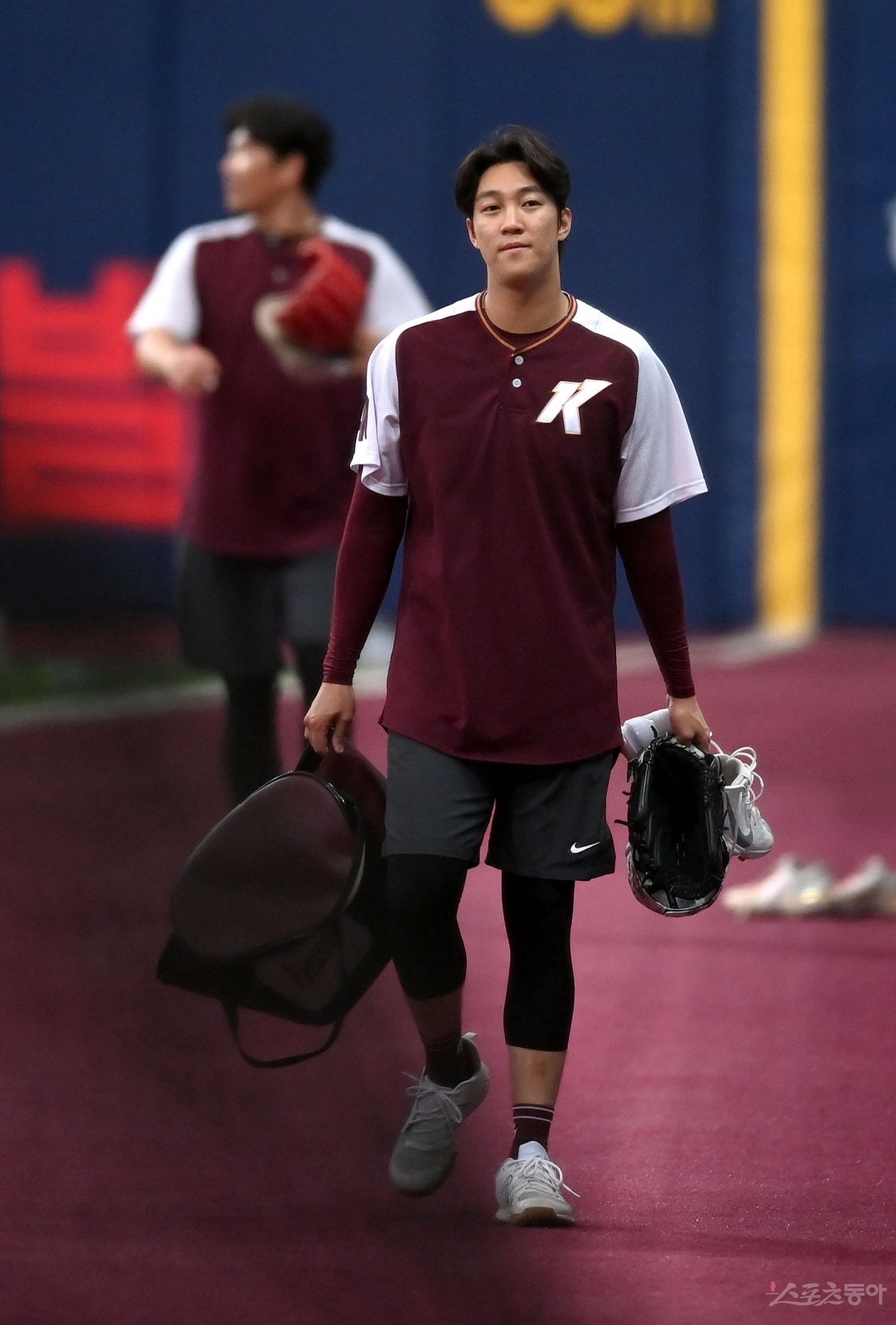 7일 서울 고척스카이돔에서 ‘2023 신한은행 SOL KBO리그’ LG 트윈스와 키움 히어로즈 경기가 열린다. 키움 안우진이 훈련을 마치고 더그아웃으로 향하고 있다.