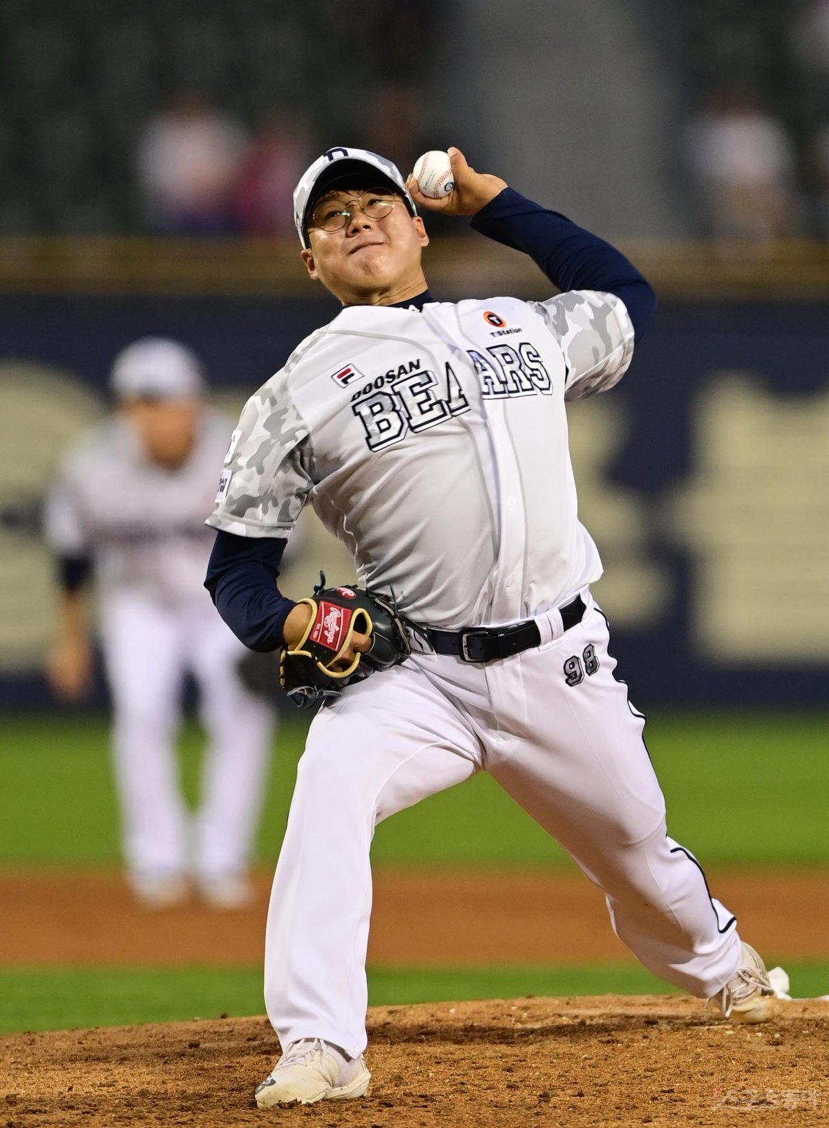 7일 서울 잠실야구장에서 열린 ‘2023 신한은행 SOL KBO리그’ 두산 베어스와 한화 이글스의 경기에서 5회초 두산 백승우가 교체로 마운드에 올라 역투하고 있다.