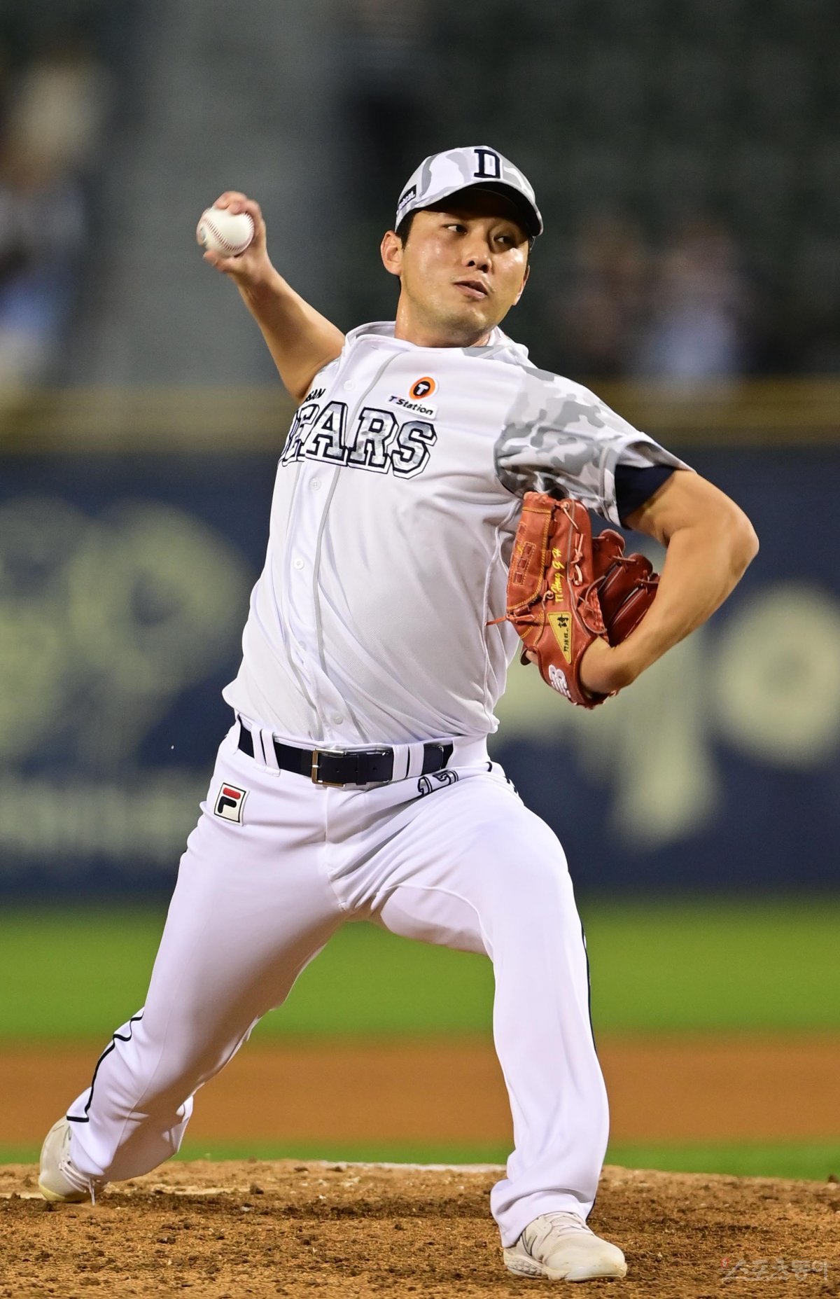 7일 서울 잠실야구장에서 열린 ‘2023 신한은행 SOL KBO리그’ 두산 베어스와 한화 이글스의 경기에서 9회초 두산 홍건희가 교체로 마운드에 올라 역투하고 있다.