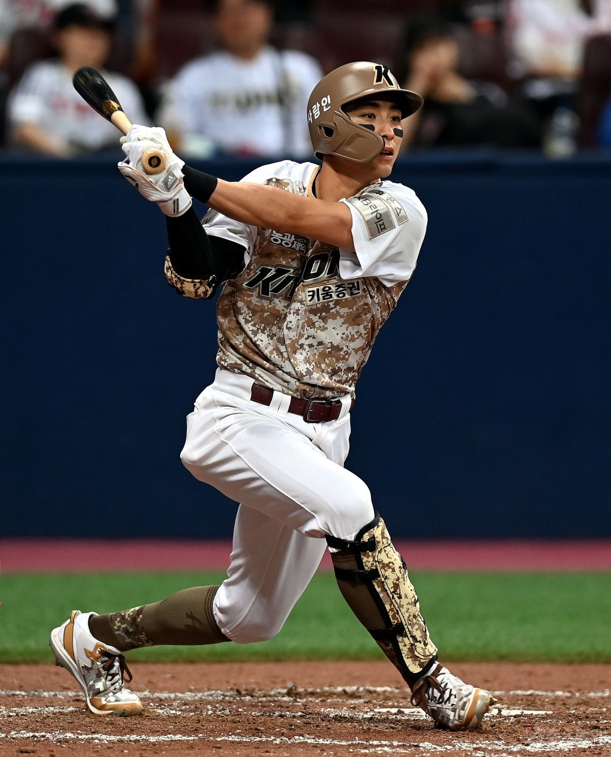 8일 서울 고척스카이돔에서 ‘2023 신한은행 SOL KBO리그’ 키움 히어로즈와 LG 트윈스의 경기가 열렸다. 4회말 2사 1루에서 키움 이정후가 1타점 3루타를 날리고 있다.