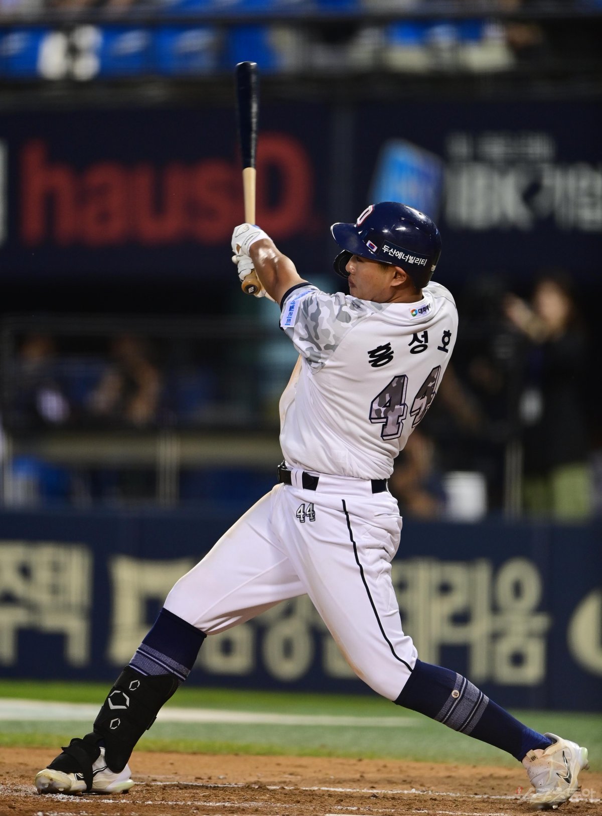 8일 서울 잠실야구장에서 열린 ‘2023 신한은행 SOL KBO리그’ 두산 베어스와 한화 이글스의 경기에서 4회말 무사 두산 홍성호가 중전 2루타를 치고 있다.