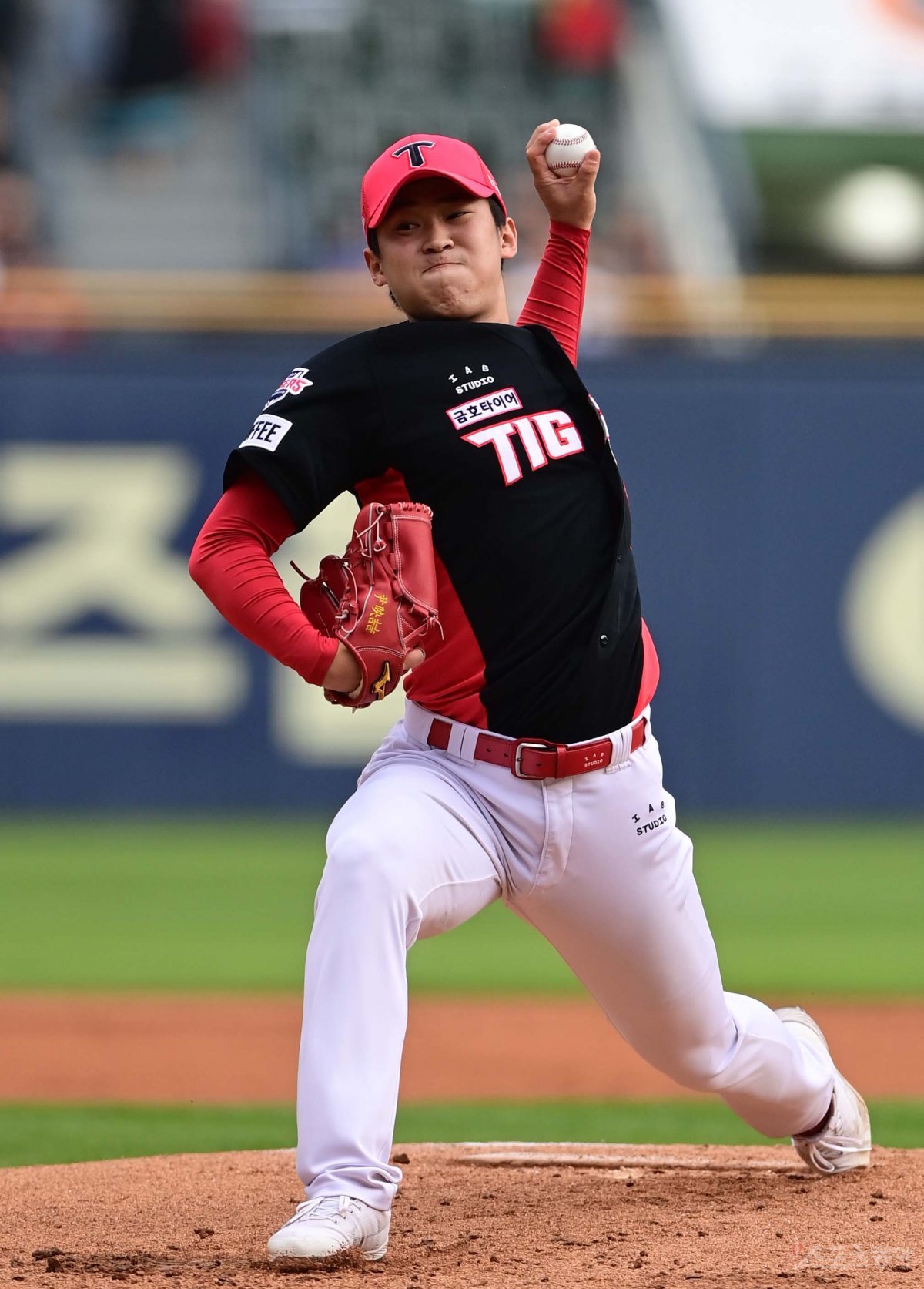 11일 서울 잠실야구장에서 열린 ‘2023 신한은행 SOL KBO리그’ 두산 베어스와 KIA 타이거즈의 경기에서 선발 투수로 마운드에 오른 KIA 윤영철이 역투하고 있다.