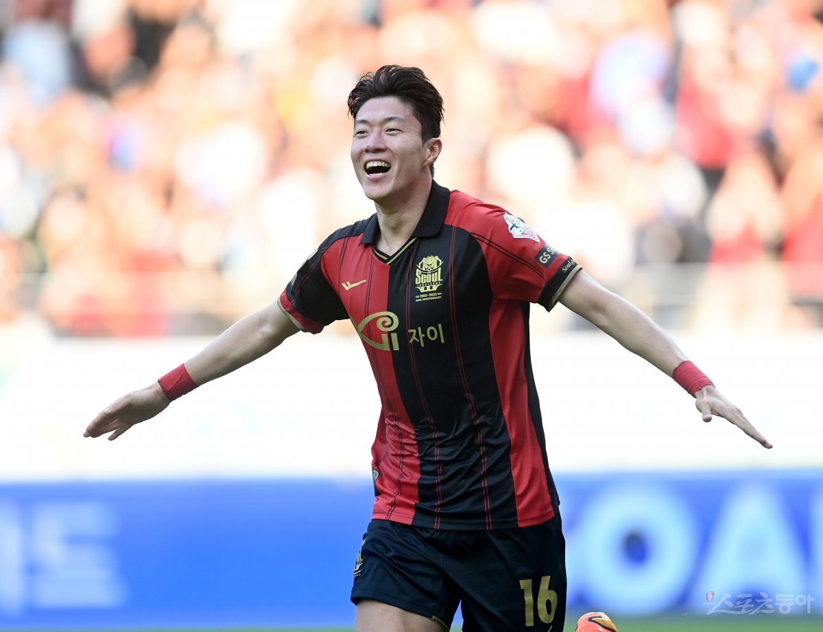 11일 서울월드컵경기장에서 열린 프로축구 ‘하나원큐 K리그1 2023’ 서울과 포항 경기에서 서울 황의조가 선제골을 성공시킨 후 기뻐하고 있다.
