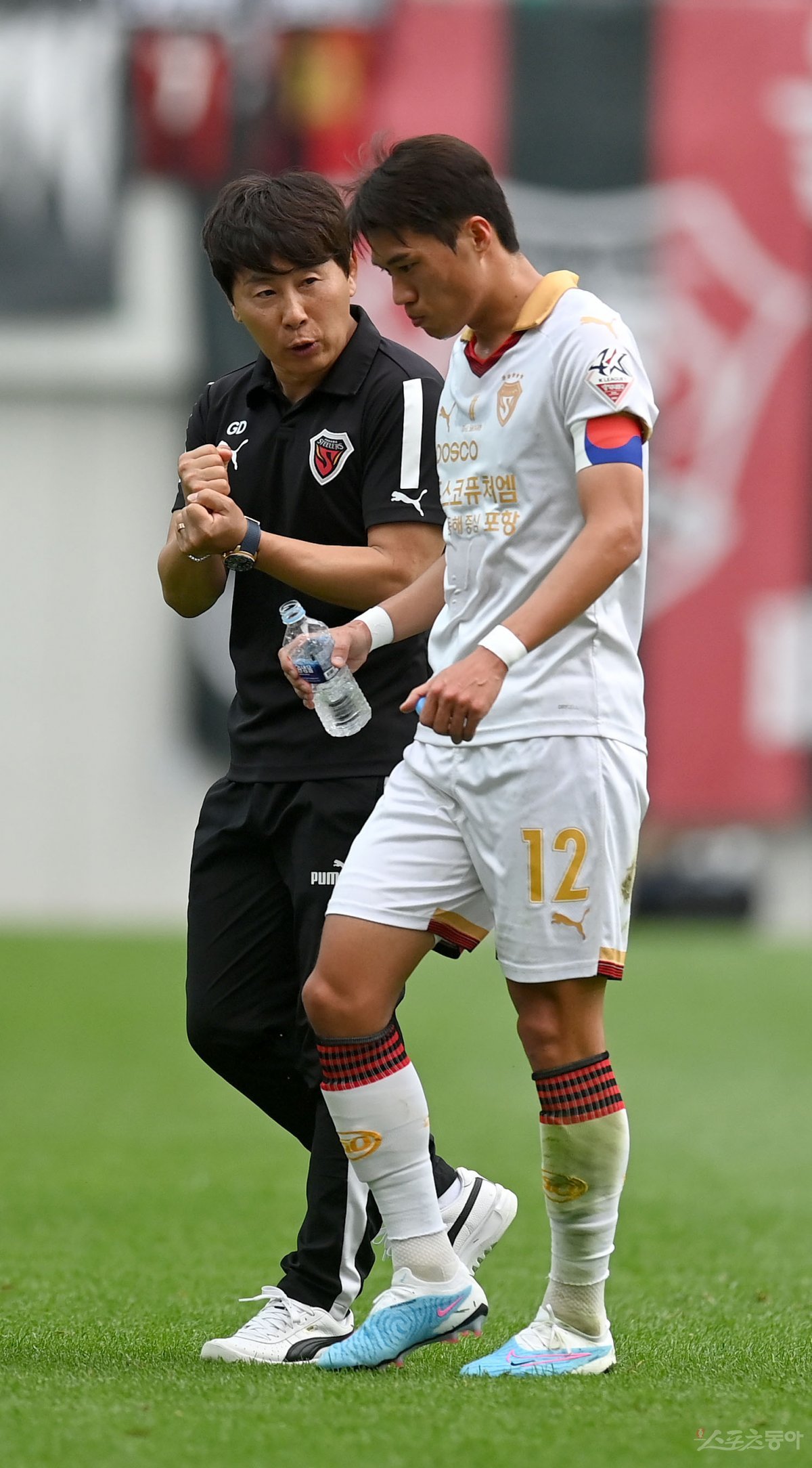 11일 서울월드컵경기장에서 열린 프로축구 ‘하나원큐 K리그1 2023’ 서울과 포항 경기에서 포항 김기동 감독이 김승대에게 작전 지시를 하고 있다.