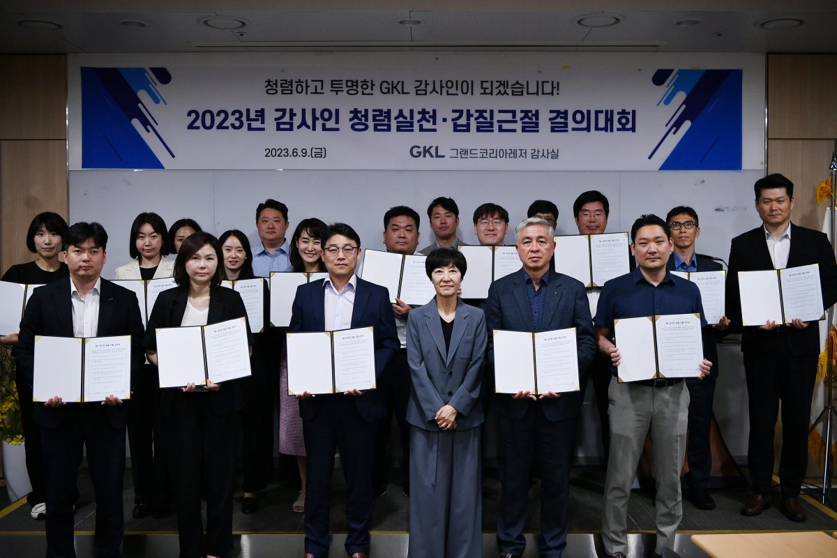 이날 행사는 김애경 감사의 개회사에 이어 인권과 갑질 근절 교육, 감사 업무 신뢰도 및 품질 제고를 위한 분임토의, 청렴하고 공정한 감사 활동을 다짐하는 감사인 결의대회, 총평 순으로 진행됐다. ‘청렴하고 투명한 GKL 감사인이 되겠습니다’라는 슬로건 아래 진행된 감사인 결의대회에서 GKL 감사인들은 존중 경청 배려의 정신을 실천하고 신뢰받는 조직이 될 것을 다짐했다.