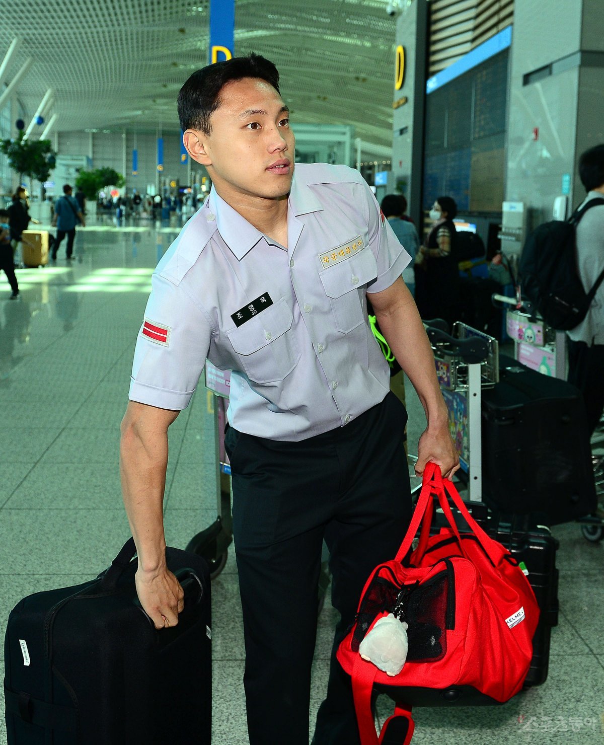 중국과의 친선경기를 갖기 위해 항저우 아시안게임 U-24 축구국가대표팀이 12일 인천국제공항을 통해 출국했다. U-24 축구대표팀 조영욱이 출국장으로 향하고 있다.