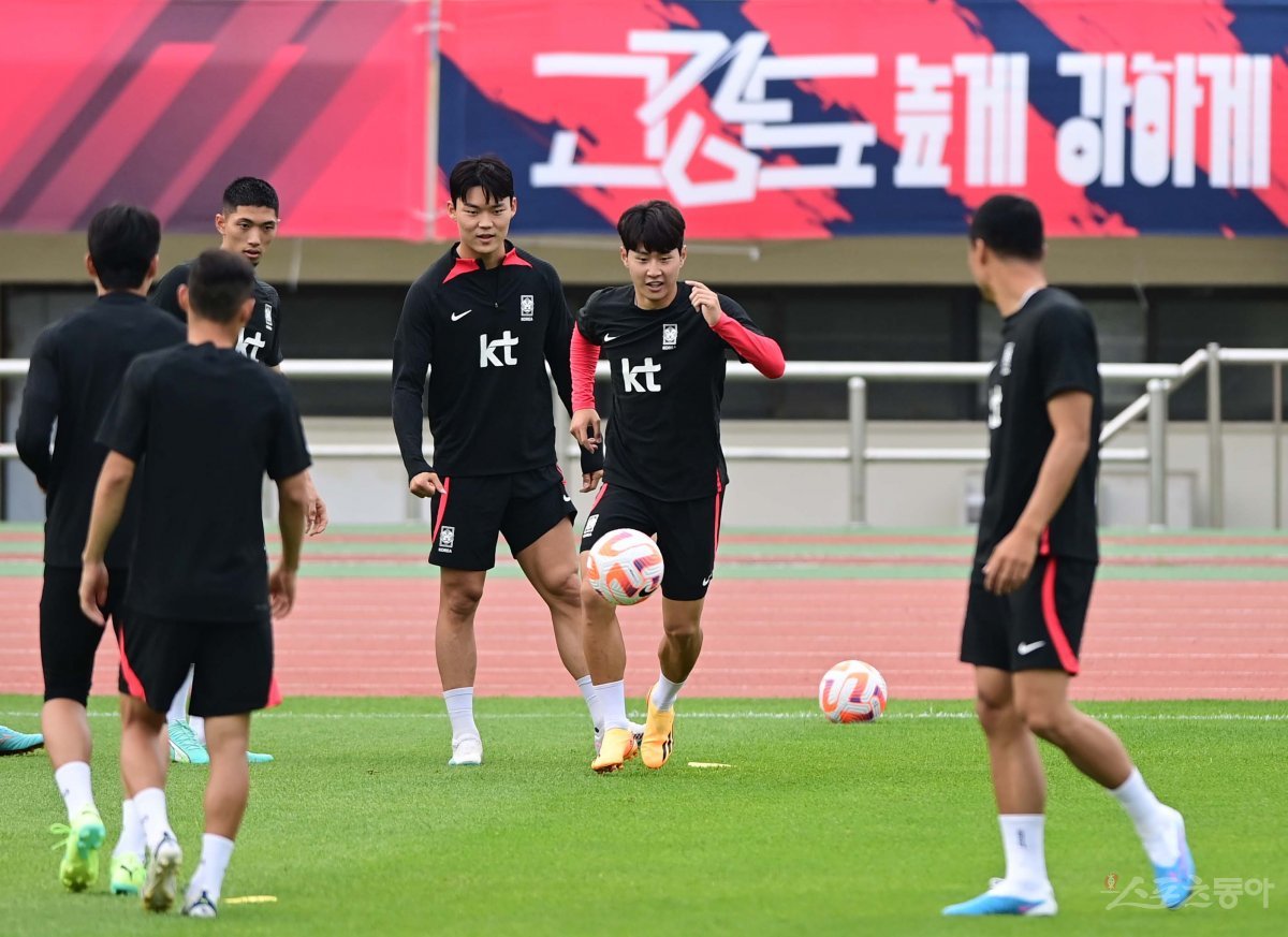 축구국가대표팀이 12일 부산 구덕운동장에서 페루, 엘살바도르와 친선경기에 앞서 소집 훈련을 진행했다. 한국 이강인이 훈련을 하고 있다.