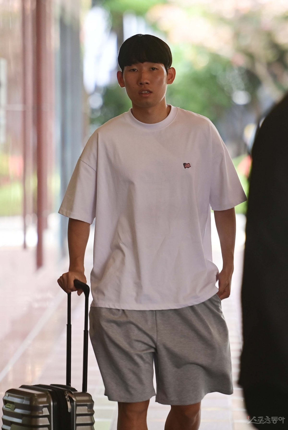 한국 홍현석이 12일 부산 부산진구 부전동 롯데호텔 부산에서 축구국가대표팀의 페루, 엘살바도르와 친선경기에 앞서 소집 훈련을 위해 입소하고 있다.
