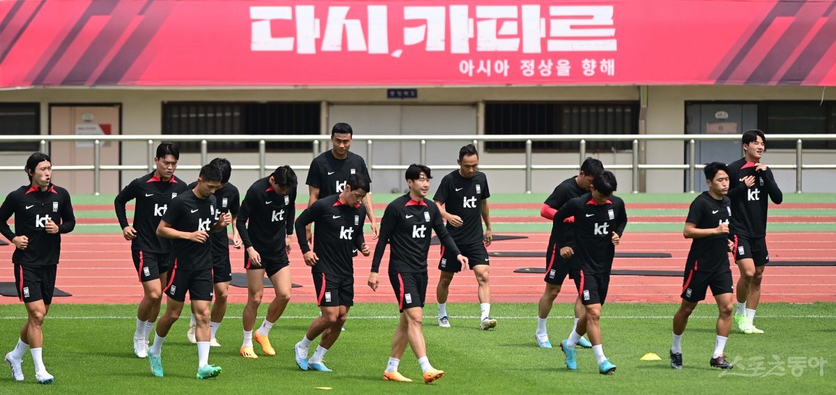 축구국가대표팀이 13일 부산 구덕운동장에서 페루, 엘살바도르와 친선경기에 앞서 소집 훈련을 진행했다. 한국 선수들이 훈련을 하고 있다.