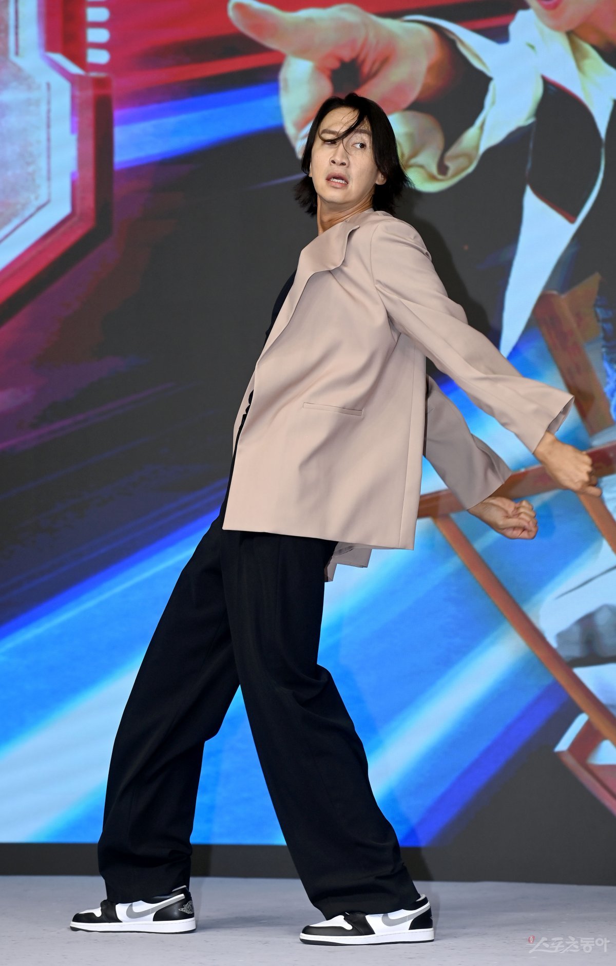 이광수가 13일 서울 동대문구 JW메리어트 동대문에서 열린 디즈니+(플러스) 예능 프로그램 ‘더 존 :버텨야 산다 시즌2’ 제작발표회에서 포토타임을 갖고 있다.