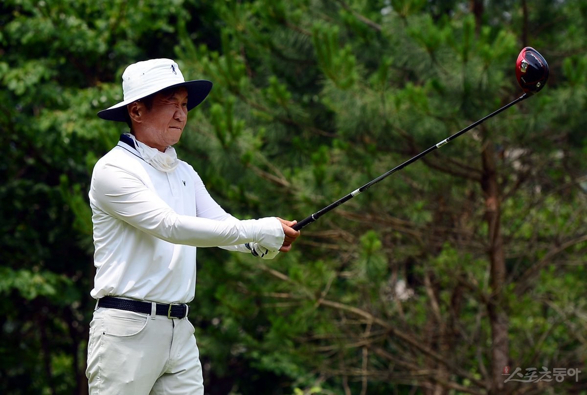 대한축구협회, 한국프로축구연맹, 울산 현대, 전북 현대가 주최하고 스포츠동아, 스포츠서울, 스포츠조선, 스포츠경향, 스포츠월드, 일간스포츠 스포츠전문 미디어 6개 사가 후원하는 ‘2023년 축구인 골프대회’가 13일 강원도 원주 오크힐스CC에서 열렸다. 대한축구협회 정몽규 회장이 티샷을 준비하고 있다.