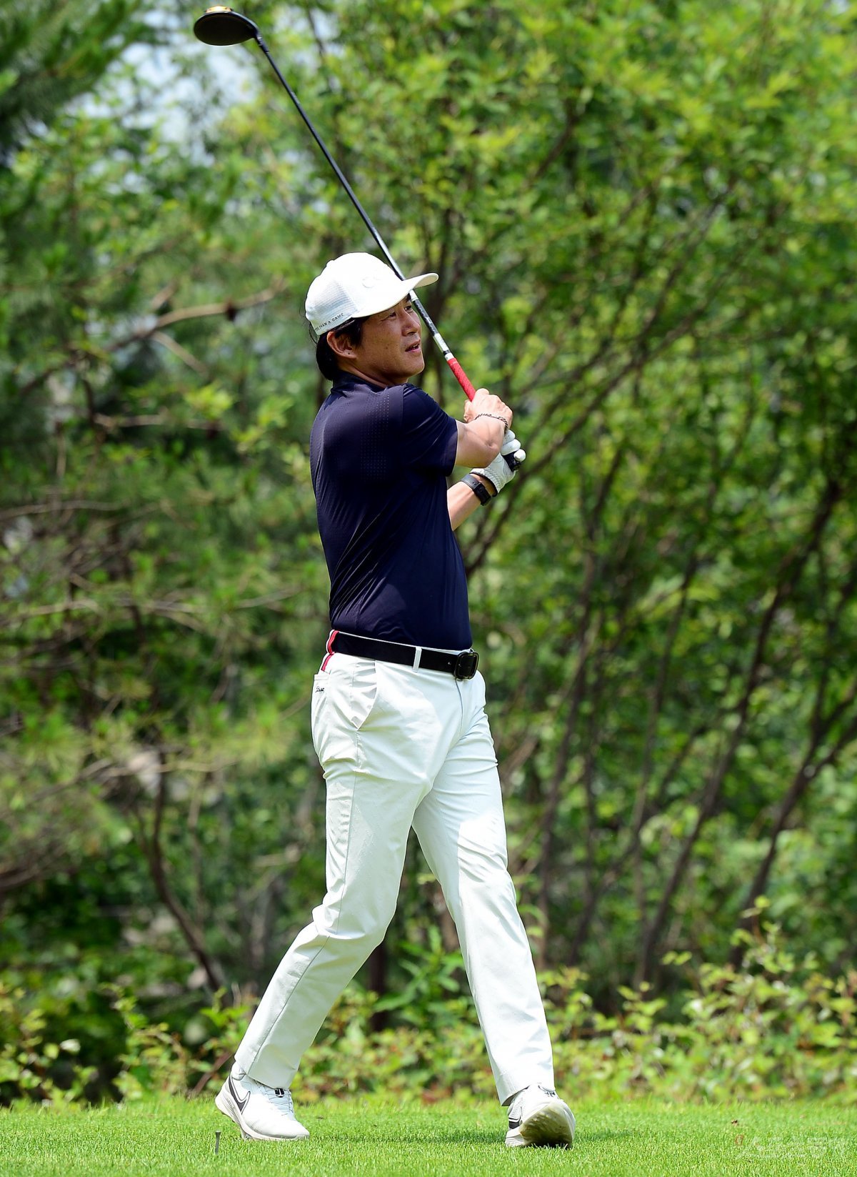 대한축구협회, 한국프로축구연맹, 울산 현대, 전북 현대가 주최하고 스포츠동아, 스포츠서울, 스포츠조선, 스포츠경향, 스포츠월드, 일간스포츠 스포츠전문 미디어 6개 사가 후원하는 ‘2023년 축구인 골프대회’가 13일 강원도 원주 오크힐스CC에서 열렸다. 박건하 전 감독이 티샷을 날리고 있다.