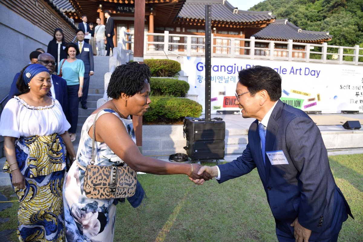 광주광역시가 광주비엔날레와 풍요로운 문화예술을 널리 알리기 위한 국제 교류의 장을 마련했다.강기정 광주광역시장은 12일 동구 전통문화관에서 ‘제1회 광주비엔날레 예술의 날’을 개최하고, 아토키 일레카 주한 콩고민주공화국 대사와 배우자, 중국·우크라이나·앙골라·잠비아·슬로베니아·벨라루스 주한 대사 배우자를 초청했다.