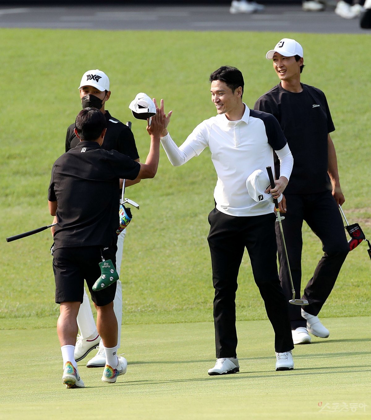 대한축구협회, 한국프로축구연맹, 울산 현대, 전북 현대가 주최하고 스포츠동아, 스포츠서울, 스포츠조선, 스포츠경향, 스포츠월드, 일간스포츠 스포츠전문 미디어 6개 사가 후원하는 ‘2023년 축구인 골프대회’가 13일 강원도 원주 오크힐스CC에서 열렸다. 박건하 전 감독이 티샷을 날리고 있다. 전 축구선수 김승용이 골프대회를 마치고 동료들과 기쁨을 나누고 있다.