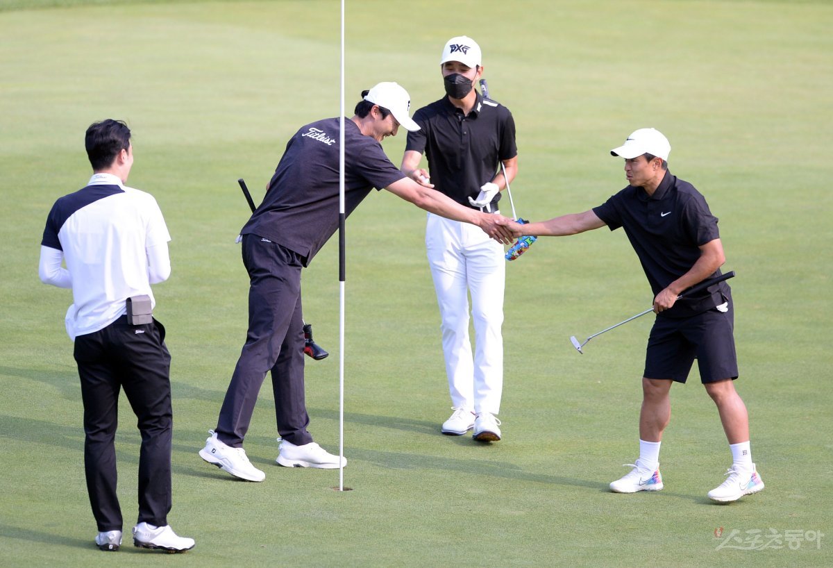 대한축구협회, 한국프로축구연맹, 울산 현대, 전북 현대가 주최하고 스포츠동아, 스포츠서울, 스포츠조선, 스포츠경향, 스포츠월드, 일간스포츠 스포츠전문 미디어 6개 사가 후원하는 ‘2023년 축구인 골프대회’가 13일 강원도 원주 오크힐스CC에서 열렸다. 박건하 전 감독이 티샷을 날리고 있다. 곽태휘(왼쪽 2번째)가 18번 홀에서 버디를 성공한 후 동료들의 환영을 받고 있다.