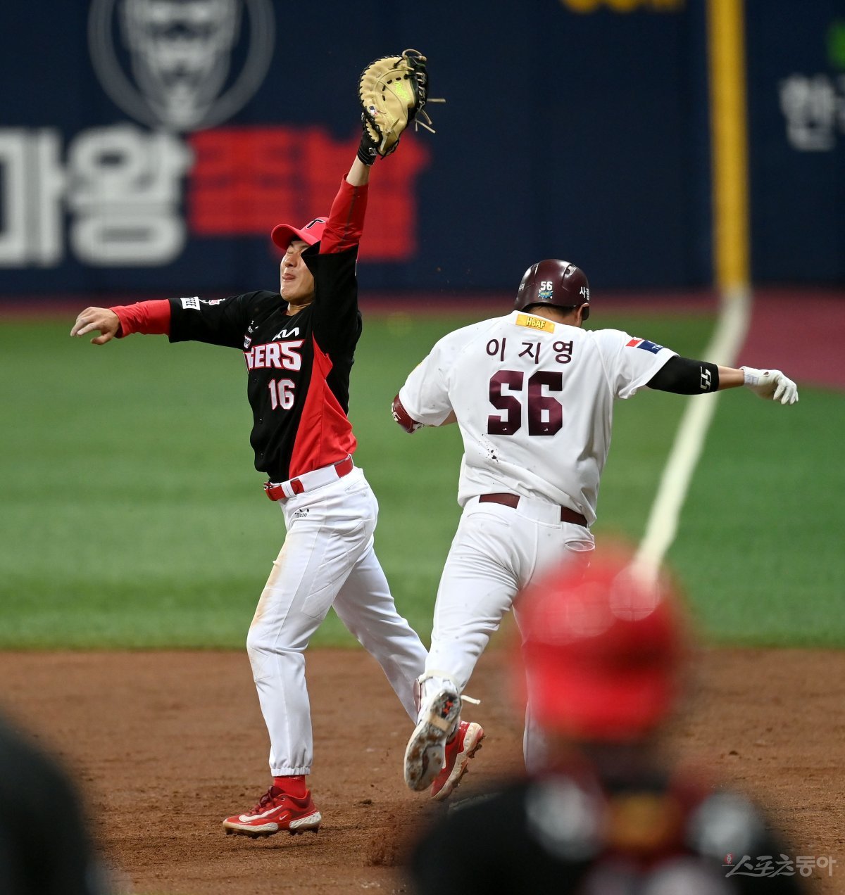 13일 서울 고척스카이돔에서 ‘2023 신한은행 SOL KBO리그’ KIA 타이거즈와 키움 히어로즈 경기가 열렸다. 2회말 1사 1,2루 키움 내야 땅볼 때 KIA 1루수 최원준이 송구된 공을 잡고 있다.
