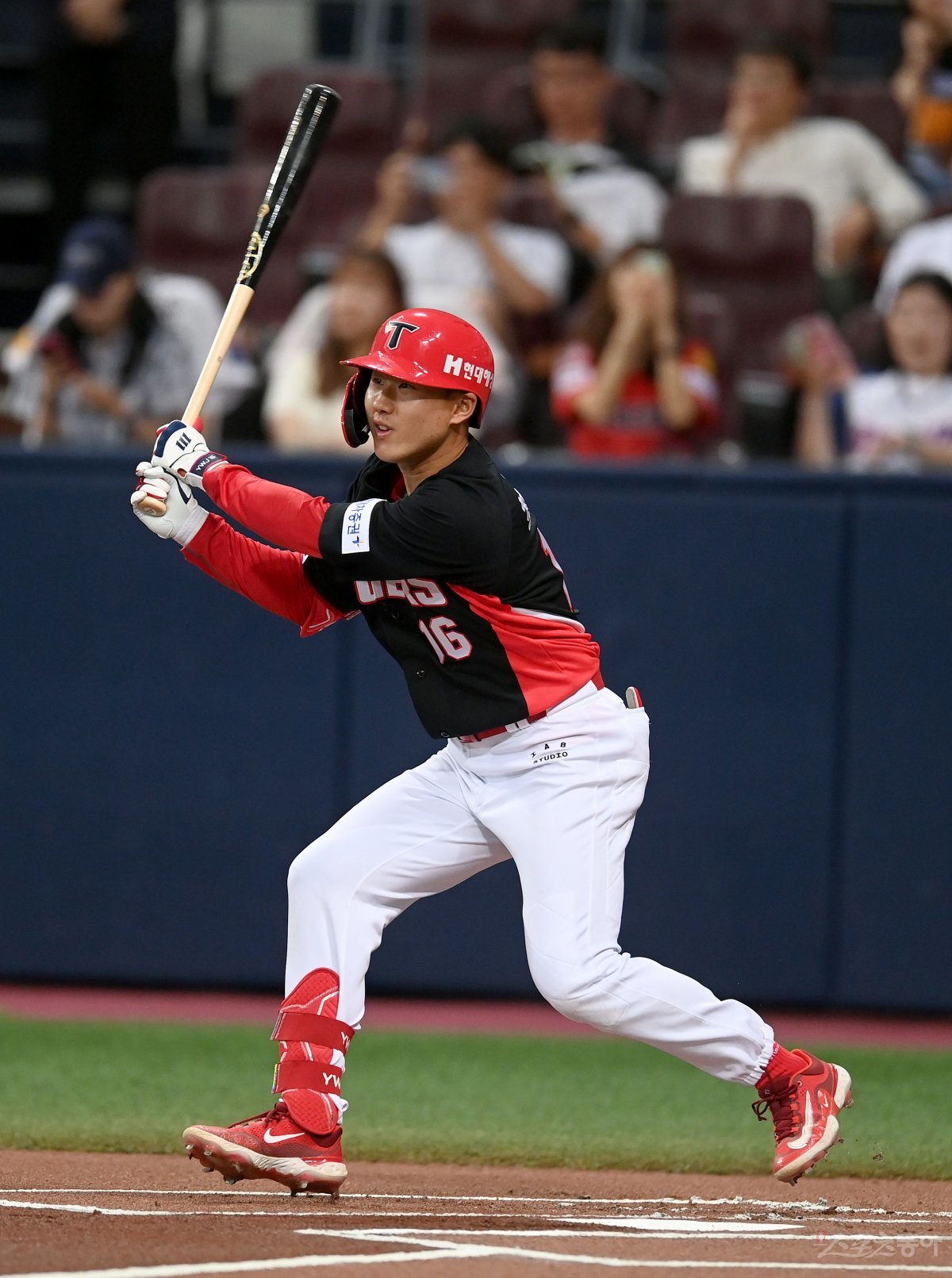 13일 서울 고척스카이돔에서 ‘2023 신한은행 SOL KBO리그’ KIA 타이거즈와 키움 히어로즈 경기가 열렸다. 군 전역 후 1군에 등록한 KIA 최원준이 1회초 1사 상황에서 좌전 안타를 치고 있다.