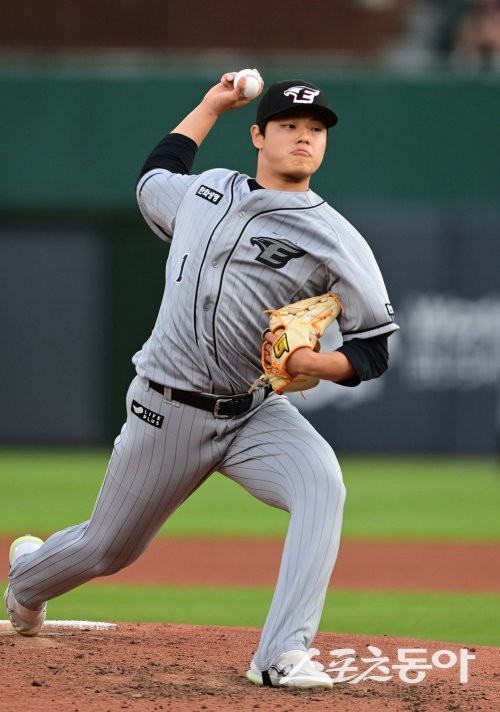 13일 부산 사직야구장에서 열린 ‘2023 신한은행 SOL KBO리그’ 롯데 자이언츠와 한화 이글스의 경기에서 선발 투수로 마운드에 오른 한화 문동주가 역투하고 있다.