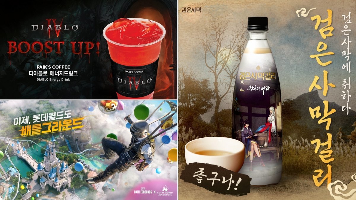 ‘디아블로4’를 소재로 한 빽다방의 ‘디아블로 에너지드링크’, ‘검은사막’ IP를 활용한 ‘검은사막걸리’, ‘배틀그라운드’ 기반의