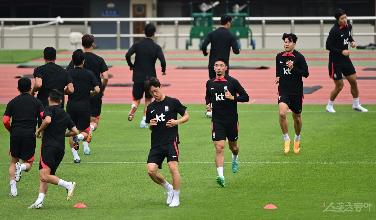축구국가대표팀이 14일 부산 구덕운동장에서 페루, 엘살바도르와 친선경기에 앞서 소집 훈련을 진행했다. 한국 선수들이 훈련을 하고 있다.