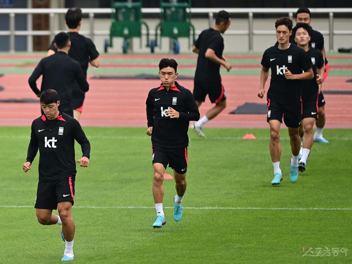 축구국가대표팀이 14일 부산 구덕운동장에서 페루, 엘살바도르와 친선경기에 앞서 소집 훈련을 진행했다. 한국 황인범이 훈련을 하고 있다.