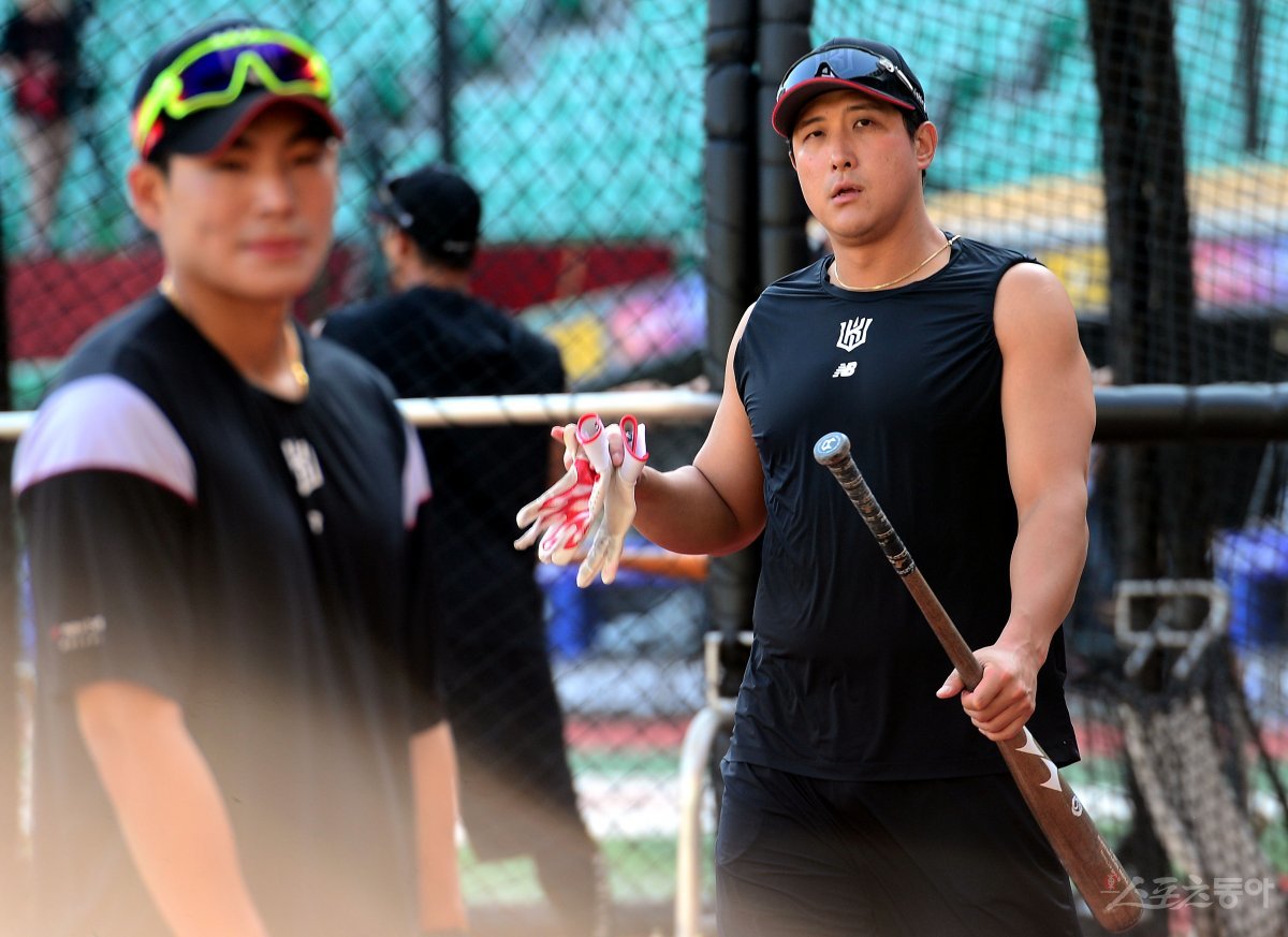 14일 인천 SSG 랜더스필드에서 ‘2023 신한은행 SOL KBO리그’ SSG 랜더스와 kt 위즈의 경기가 열린다. 경기에 앞서 kt 황재균이 훈련을 마치고 더그아웃으로 향하고 있다.