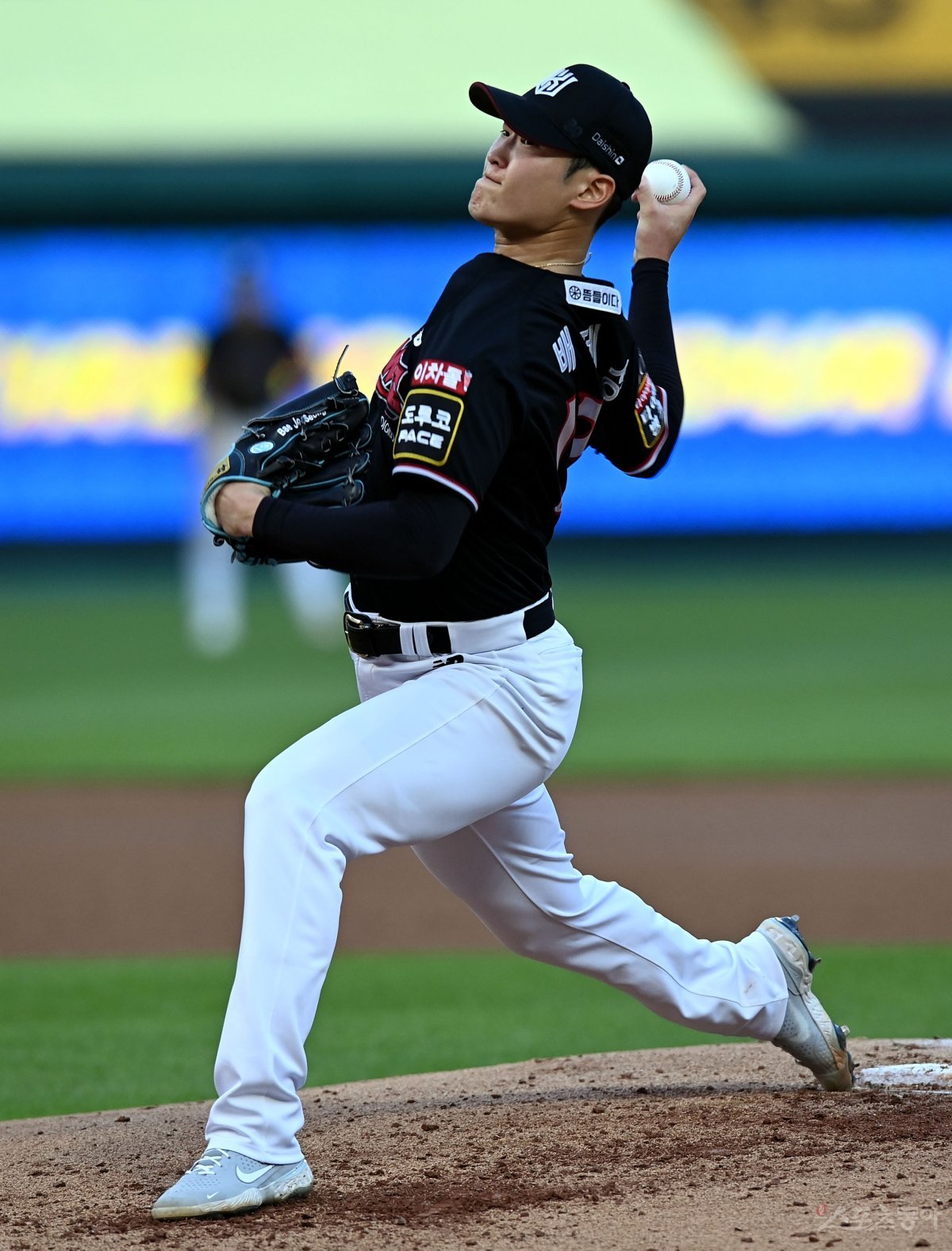 14일 인천 SSG 랜더스필드에서 ‘2023 신한은행 SOL KBO리그’ SSG 랜더스와 kt 위즈의 경기가 열렸다. kt 선발투수 배제성이 힘차게 볼을 던지고 있다.