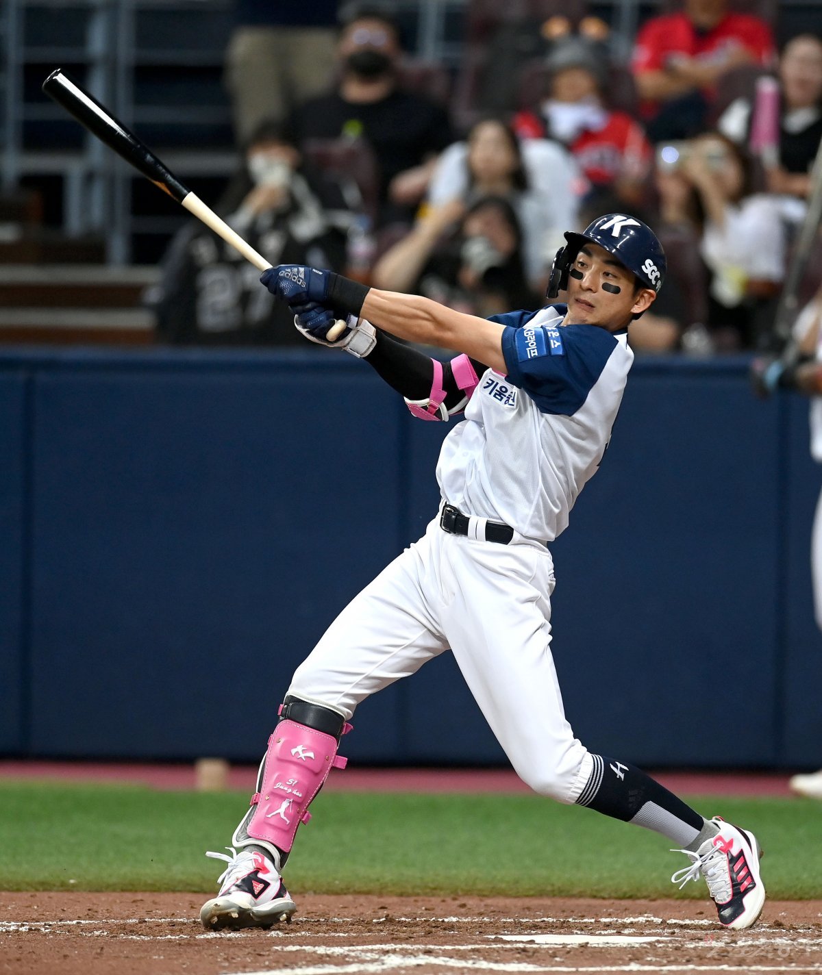 14일 서울 고척스카이돔에서 ‘2023 신한은행 SOL KBO리그’ KIA 타이거즈와 키움 히어로즈 경기가 열렸다. 4회말 1사 키움 이정후가 좌전 3루타를 치고 있다.