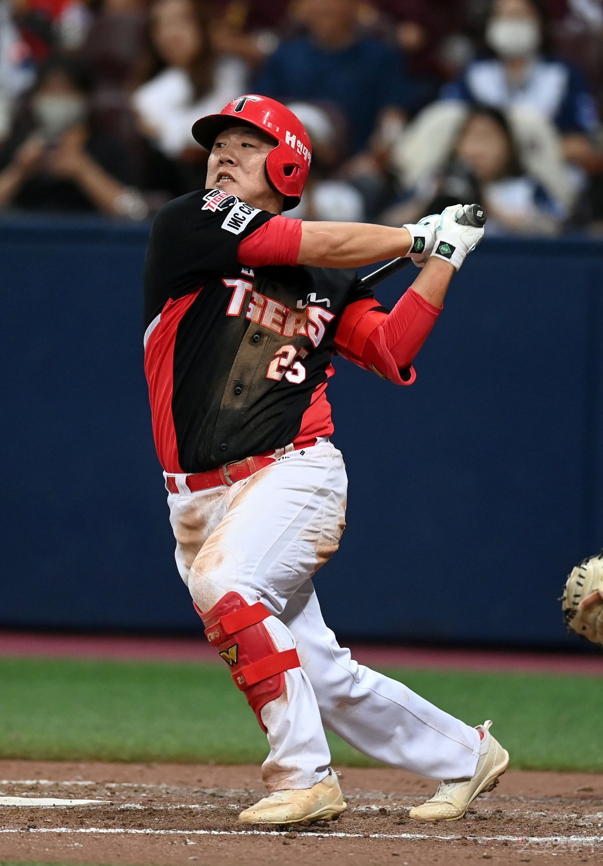 14일 서울 고척스카이돔에서 ‘2023 신한은행 SOL KBO리그’ KIA 타이거즈와 키움 히어로즈 경기가 열렸다. 9회초 무사 1루 KIA 이우성이 중전 안타를 치고 있다.