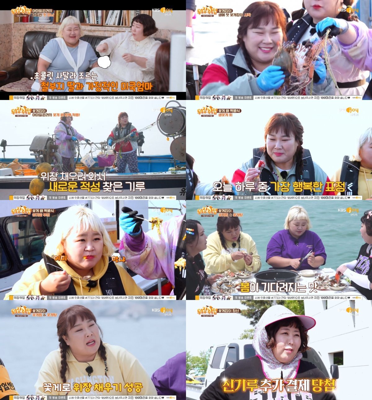 항구에 무사히 도착한 이들은 오늘 잡은 꽃게로 꽃게찜과 꽃게탕을 만들기로 했다. 홍윤화는 주부의 관록을 십분 발휘해 요리를 뚝딱 완성했고, 갓 잡은 꽃게로 만든 싱싱한 꽃게 맛을 본 신기루와 김민경은 감탄을 터트렸다.