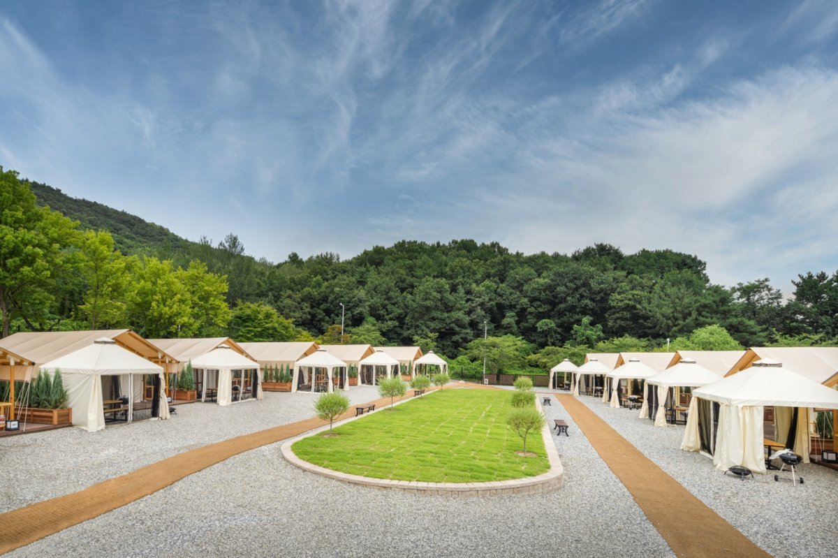 지난해 7월 말 문을 연 아산스파포레는 서울에서 1시간 대에 도착할 수 있는 ‘도심 속 휴식공간’을 표방하는 친환경 캠핑 휴양지다.