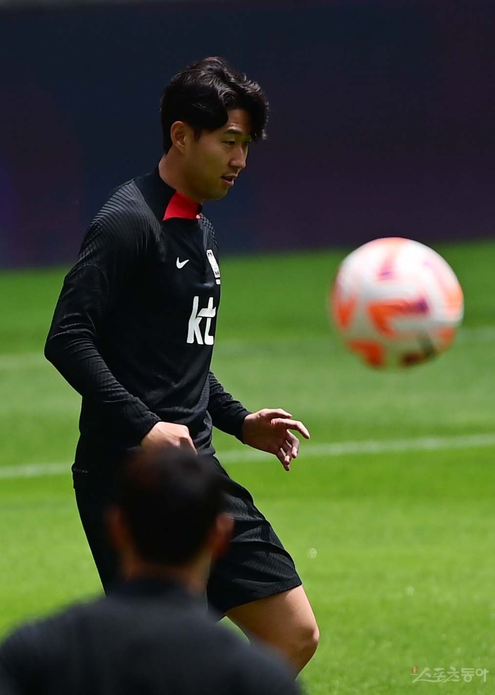 축구국가대표팀이 15일 부산아시아드 주경기장에서 페루, 엘살바도르와 친선경기에 앞서 소집 훈련을 진행했다. 한국 손흥민이 훈련을 하고 있다.