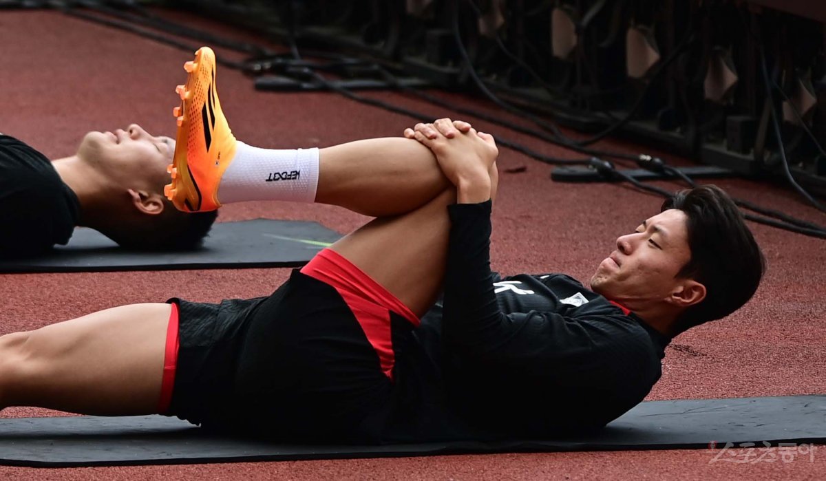 축구국가대표팀이 15일 부산아시아드 주경기장에서 페루, 엘살바도르와 친선경기에 앞서 소집 훈련을 진행했다. 한국 황의조가 스트레칭으로 몸을 풀고 있다.