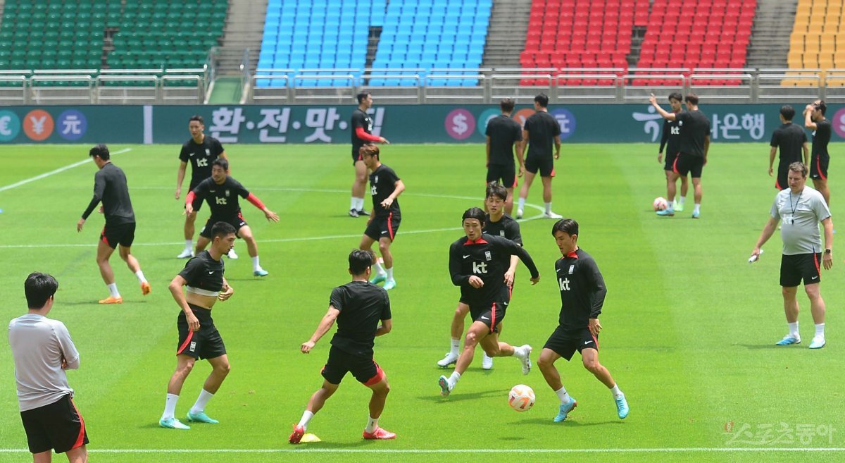 축구국가대표팀이 15일 부산아시아드 주경기장에서 페루, 엘살바도르와 친선경기에 앞서 소집 훈련을 진행했다. 한국 선수들이 훈련을 하고 있다.