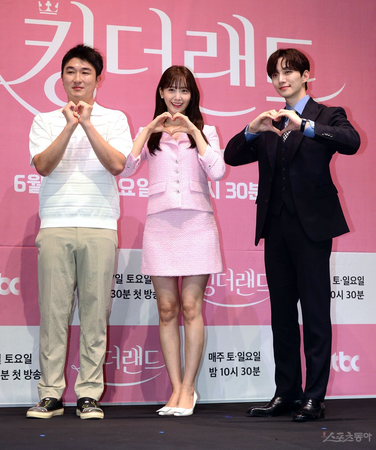 임현욱 감독, 배우 임윤아, 이준호가 15일 서울 구로구 라마다서울 신도림에서 열린 JTBC 새 토일드라마 ‘킹더랜드’ 제작발표회에서 포토타임을 갖고 있다.