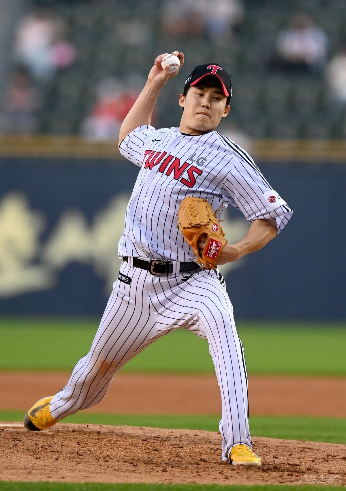 15일 서울 잠실야구장에서 ‘2023 신한은행 SOL KBO리그’ 삼성 라이온즈와 LG 트윈스 경기가 열렸다. 선발 투수로 등판한 LG 임찬규가 역투하고 있다.