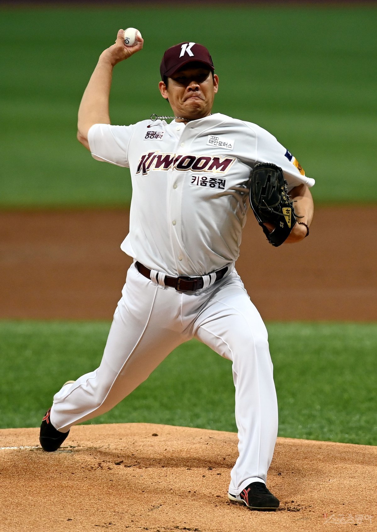 15일 서울 고척스카이돔에서 ‘2023 신한은행 SOL KBO리그’ 키움 히어로즈와 KIA 타이거즈의 경기가 열렸다. 키움 선발투수 정찬헌이 힘차게 볼을 던지고 있다.